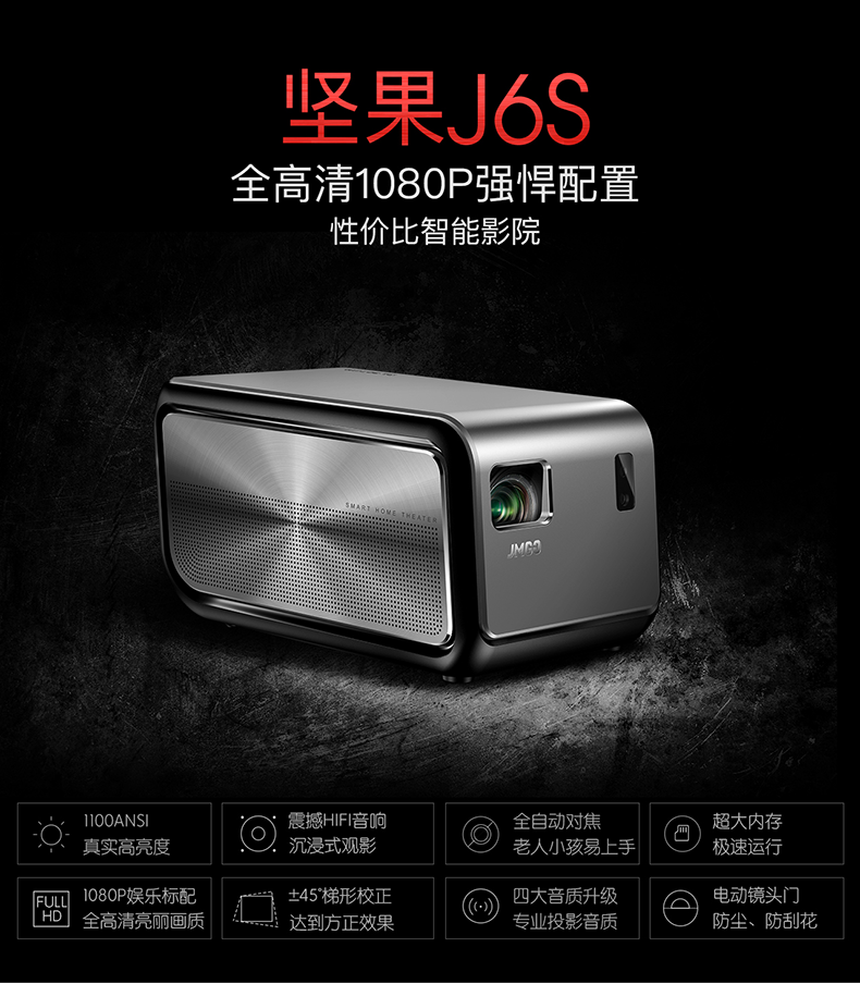 坚果J6S投影仪办公高清1080P 4K安桌智能电视wifi无线办公投影机